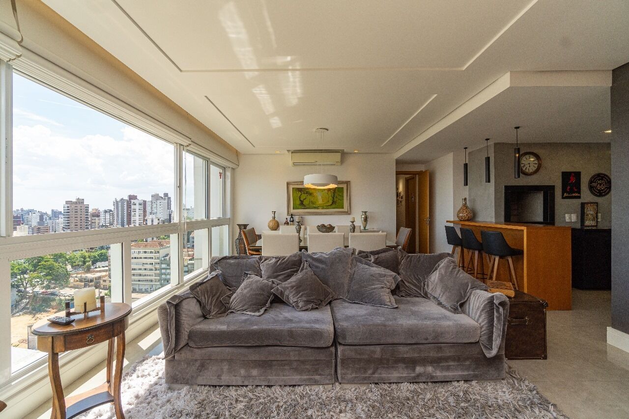 Apartamento de 126m², localizado em um andar alto, com vista panorâmica da cidade e do deslumbrante pôr do sol sobre o Guaíba. O imóvel conta com três suítes espaçosas, sendo uma delas uma suíte master com closet e amplo banheiro. O living extenso com um janelão oferece uma entrada generosa de luz natural e uma vista espetacular, além de contar com lareira e churrasqueira.