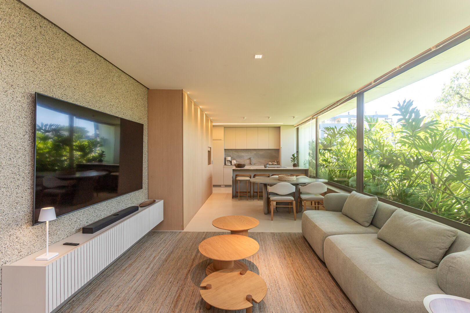 Já vem todo equipado com geladeira, fogão, forno, ar-condicionado e churrasqueira.