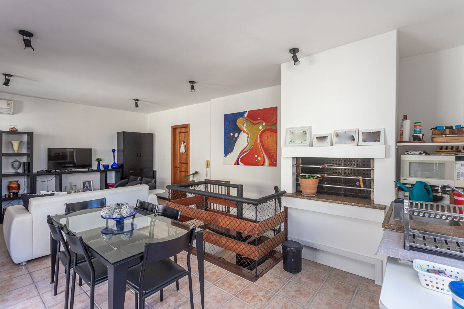 No pavimento superior, o destaque fica por conta da área social: sala de estar, lavabo, sala de jantar com sacada, churrasqueira e um terraço com piscina, perfeito para aproveitar o sol, relaxar e receber amigos com conforto e privacidade.